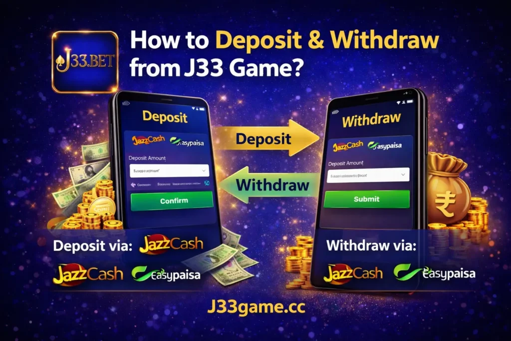 J33 Game allows users to deposit money using JazzCash and EasyPaisa, making the process quick and reliable.