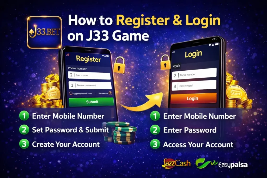 J33 Game registration and login process is designed for beginners. With simple steps and strong security, J33 Game makes online earning easy for Pakistani users.